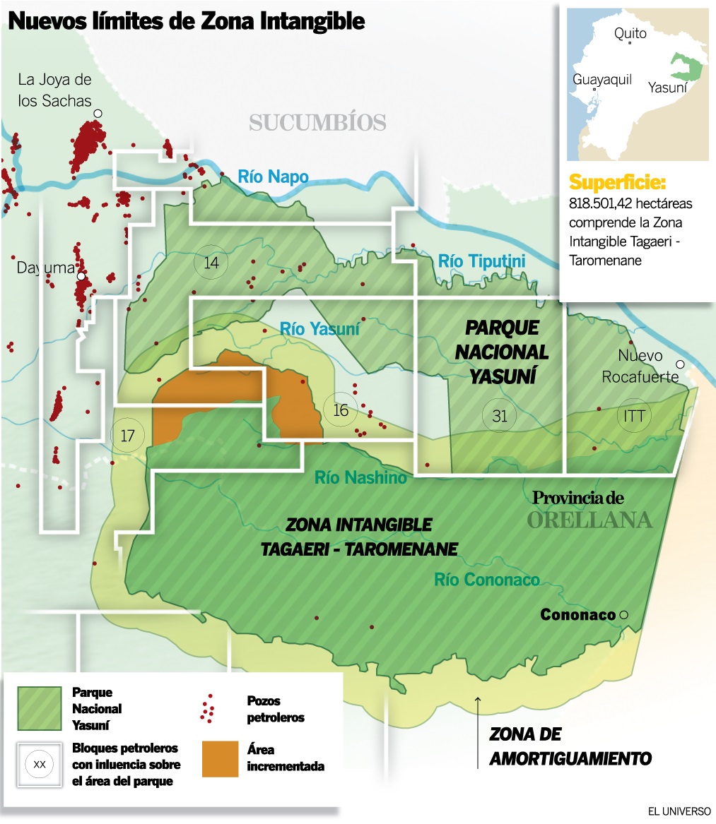Cette zone d’exploitation de plus de 200 mille hectares, soit près de la moitié de la surface de toute l’agglomération de Quito, fut impulsée avec 13 autres projets par le gouvernement équatorien dans le cadre de l’initiative “Ronda Suroriente“, avec pour objectif la vente aux enchères de ces terrains à des entreprises nationales et étrangères. En 2012, une délégation technique appelée “Secretariat d’hydrocarbures de l’Équateur” se rendit en Amazonie pour visiter les communautés natives et obtenir leur accord pour l’exploitation pétrolière de la région. C’est là que le bat blesse.